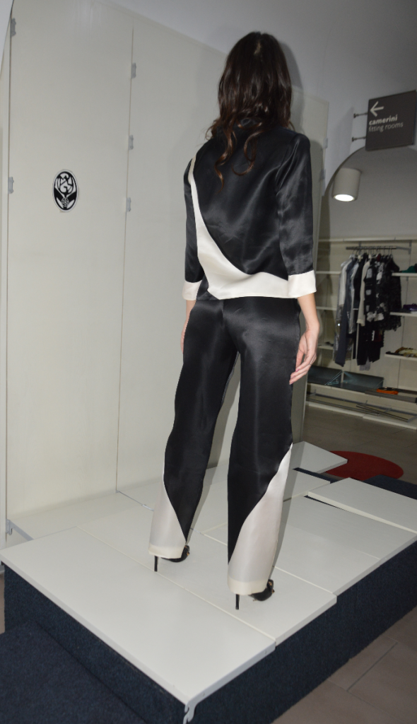 Le tecniche della Couture vengono introdotte in questa collezione con tessuti di pura seta e disegni esclusivi. La lavorazione è sartoriale.